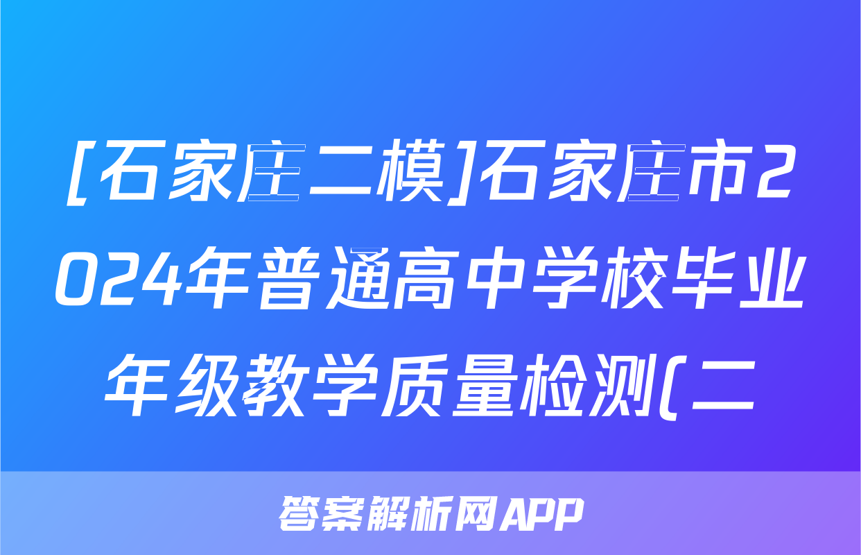 [石家庄二模]石家庄市2024年普通高中学校毕业年级教学质量检测(二)理数答案正在持续更新,目前2024届全国大联考答案网为大家整理了相关试题及答案,供大家查缺补漏,高效提升成绩。