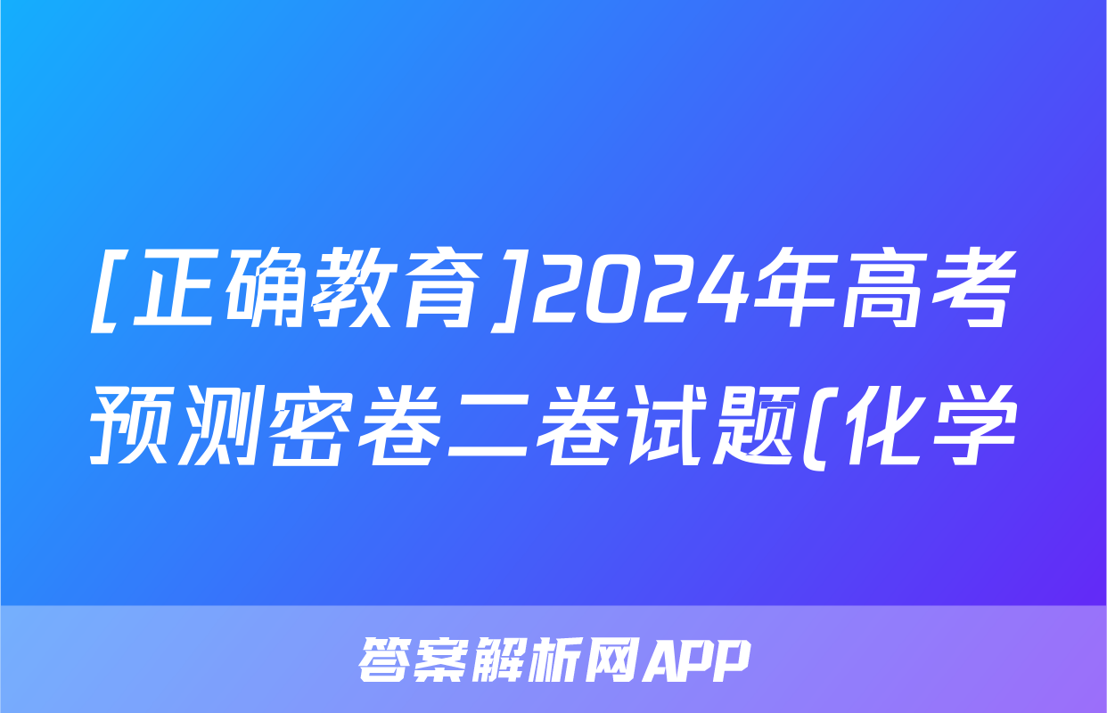 [正确教育]2024年高考预测密卷二卷试题(化学)正在持续更新,目前2024届全国大联考答案网为大家整理了相关试题及答案,供大家查缺补漏,高效提升成绩。