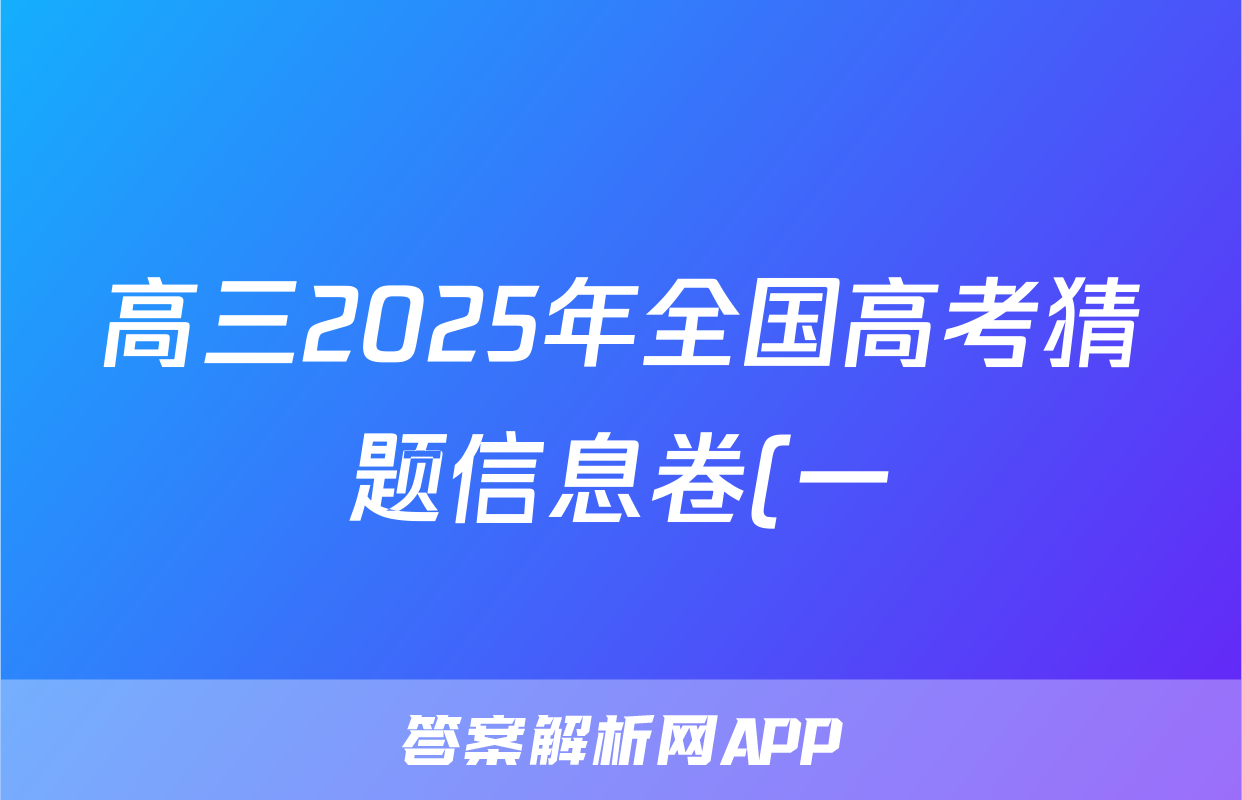 高三2025年全国高考猜题信息卷(一)1化学(云南)试题正在持续更新,目前2024届全国大联考答案网为大家整理了相关试题及答案,供大家查缺补漏,高效提升成绩。